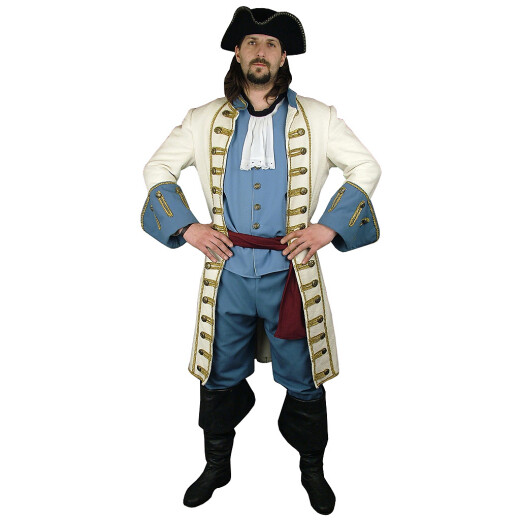 - Parts of the costume: trousers, coat, vest, wristbands, leggings, tricorn