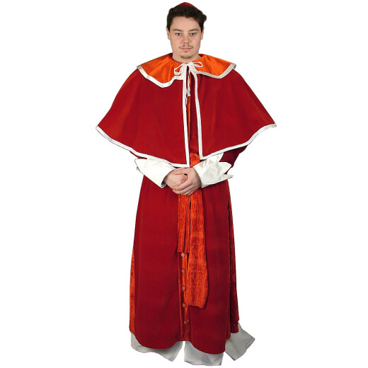 Why not try this original costume cardinal Mazini. This extraordinary cardinal robe consists of a long coat with a cape and an expressive collar. The satin sleeves of the jacket are pointed. This costume Cardinal Mazarini is replenished with cap. Lower layer of costume consists of a long linen shirt. Further product information ...