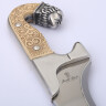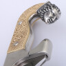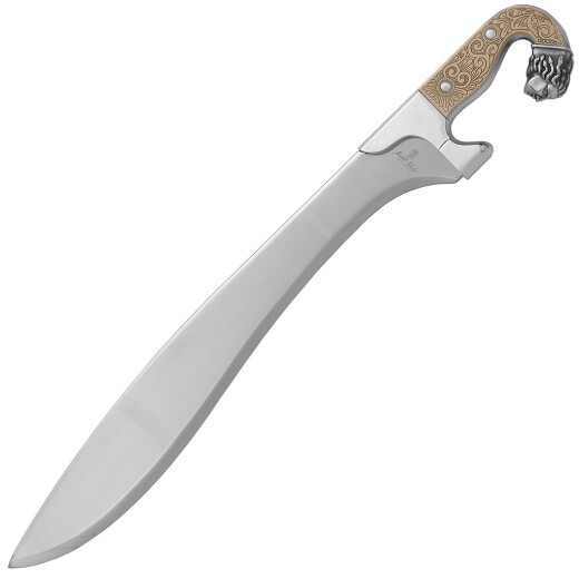 The Falcata is characterized by its forward-curved blade, which combines the chopping power of an axe with the agility of a sword. The blade of this replica is made of high-quality AISI 420 stainless steel and polished to a mirror finish. However, what makes this piece unique is its hilt. The hilt is made of Zamak alloy and is richly silver-plated.