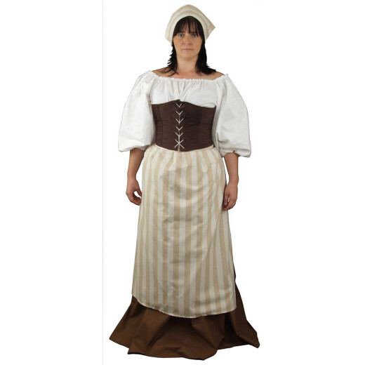 This Landlady costume Gina consists of shirt, corset, skirt, apron and bonnet. Shirt is short-sleeved and corset has lacing in the front. Long skirt hangs loosely to the ground. Apron is tied up through the skirt. Landlady costume Gina is replenished with stylish bonnet. Further product information ...