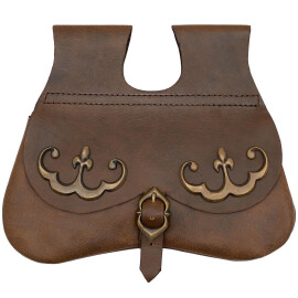 This bag was modelled on a specimen from the High Gothic period. It was especially popular with French merchants and fair sellers who needed to carry large sums of money on them in order to operate their business.The flap is decorated in an unobtrusive manner with the ornament of letter B that runs around its entire edge. The belt pouch with ornaments is closed via a cast buckle.  Further product information ...