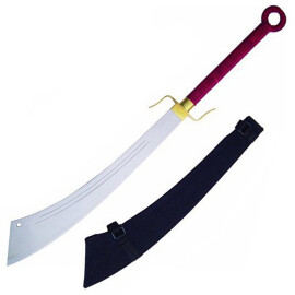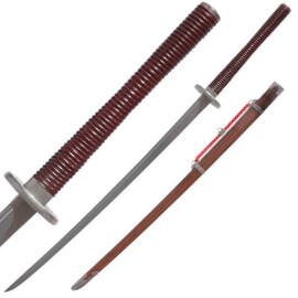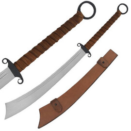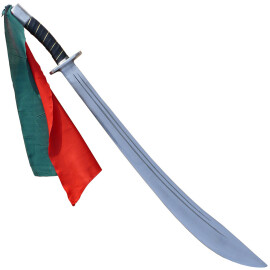 The sword's single-edged blade is fullered. The bent (so-called "ox-tail") pommel and the slotted scabbard facilitate a quicker drawing of the blade. The pommel is equipped with a small metal ring to which a tassel or a piece of cloth may be tied. This sharp Dao is comfortably light and can be wielded with ease by the new or experienced practitioner.