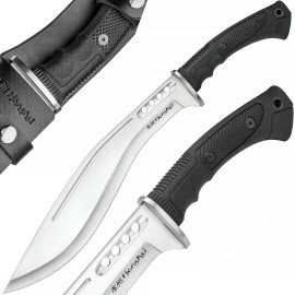 Kukri knives are known from the Gurkha soldiers of the English army. You can achieve high cutting force with this quality slasher. Gurhkha is characteristic by its blade bending and frontal centre of gravity. The full-tang blade goes through the handle to its end. Further product information ...