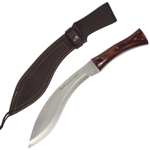 The handle is of riveted layered wood. The Kukri knife Professional comes with a solid leather scabbard.