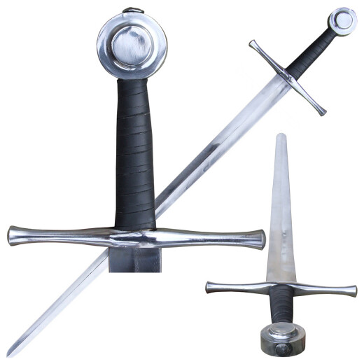 The practical | battle-ready version of this sword has a blunt edge (2-3mm) and rounded point. Such sword was designed to be drawn in a battle or in a stage combat show.