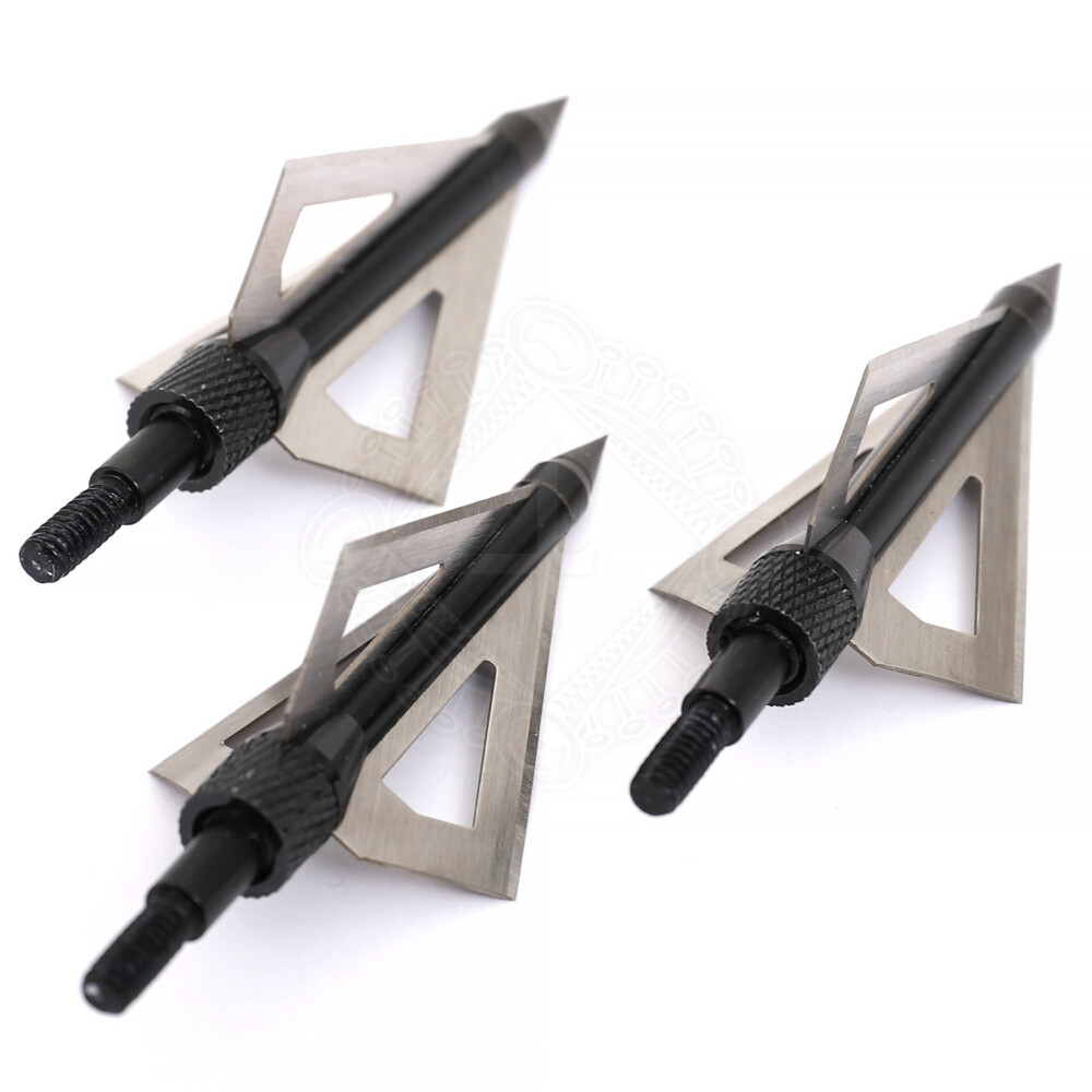 Broadheads, hunting arrowheads with 3 blades, 3-pack