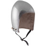 1xThe Bascinet developed in the early 14th century from the Secret helmet or Cerveliere and was popular up to the 15th century. The offered model is available in sizes M and L. It features an aventail from 1.6mm thick spring steel rings, woven 4-in-1, which is attached by eylet-pins and a leather cord. An adjustable padded liner is included. Further product information ...