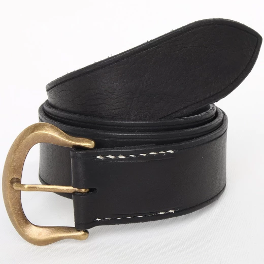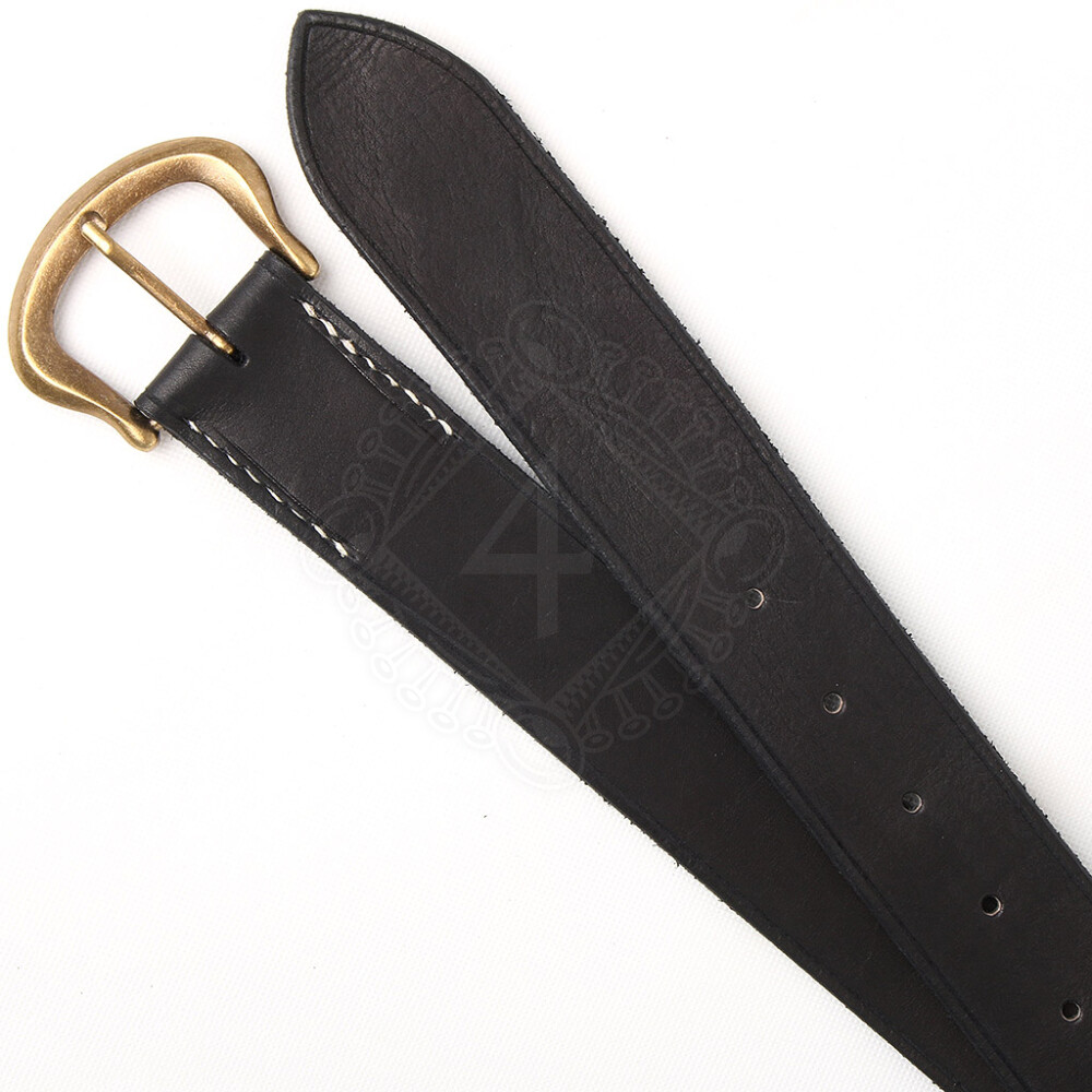 A variation of the simple late-gothic belt with a timeless look is made of cowhide leather up to 4mm thick. A simple cast buckle is made according to documents from the period concerned.  This type of buckle is made of composite alloy. The buckle is hand sewn onto the belt strap with flaxy thread. The edges of the belt are decorated with an engraved groove. The belt's width is 5cm. Further product information ...