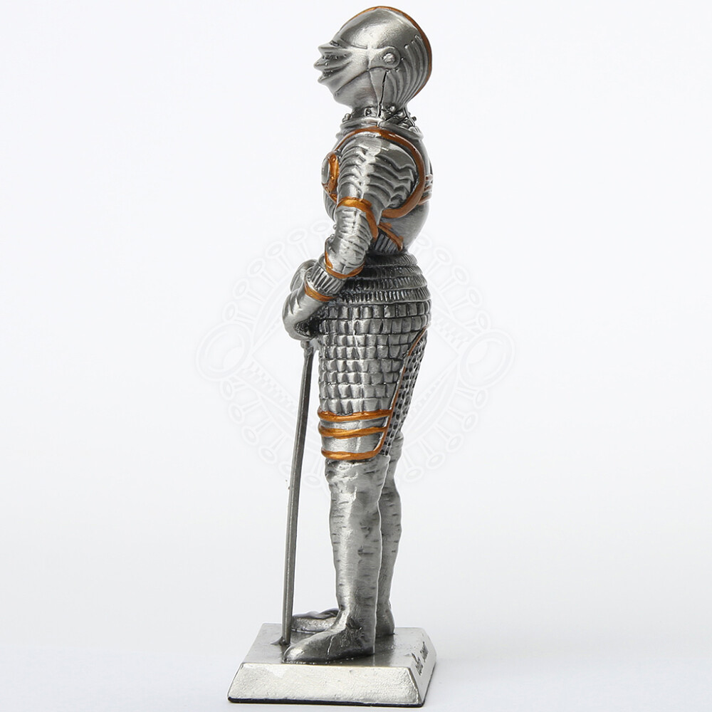 Tin knight statue in gilded armor with besagews