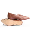 The shoes are made of quality cowhide with a thickness of approx. 2.5 mm. This material thickness ensures that the shoe holds its shape while beautifully adapting to your foot with wear. A distinctive aesthetic element is the decorative stitching along the entire upper rim and instep, adding elegance to the shoes. The fastening is managed by a leather thong on the instep, allowing for easy slipping on and adjustment to the height of your instep.