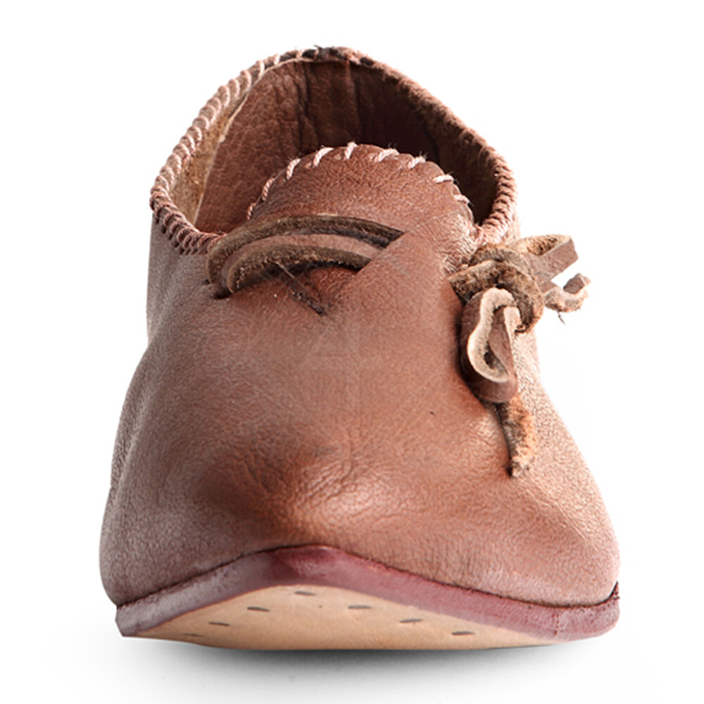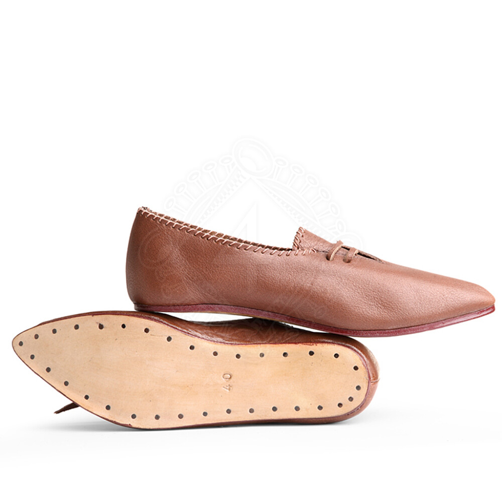 1xAre you looking for versatile footwear that will take you across centuries and fits almost any costume? These low leather shoes are the perfect foundation for a historical wardrobe. Their design is based on period illuminations and finds, typical for a long period from the 12th to the 15th century. Thanks to their simplicity and functionality, they were worn by everyone – from common peasants and craftsmen to burghers and even soldiers during moments of rest. Whether you are a man or a woman, these shoes will underscore the authenticity of your character. Further product information ...