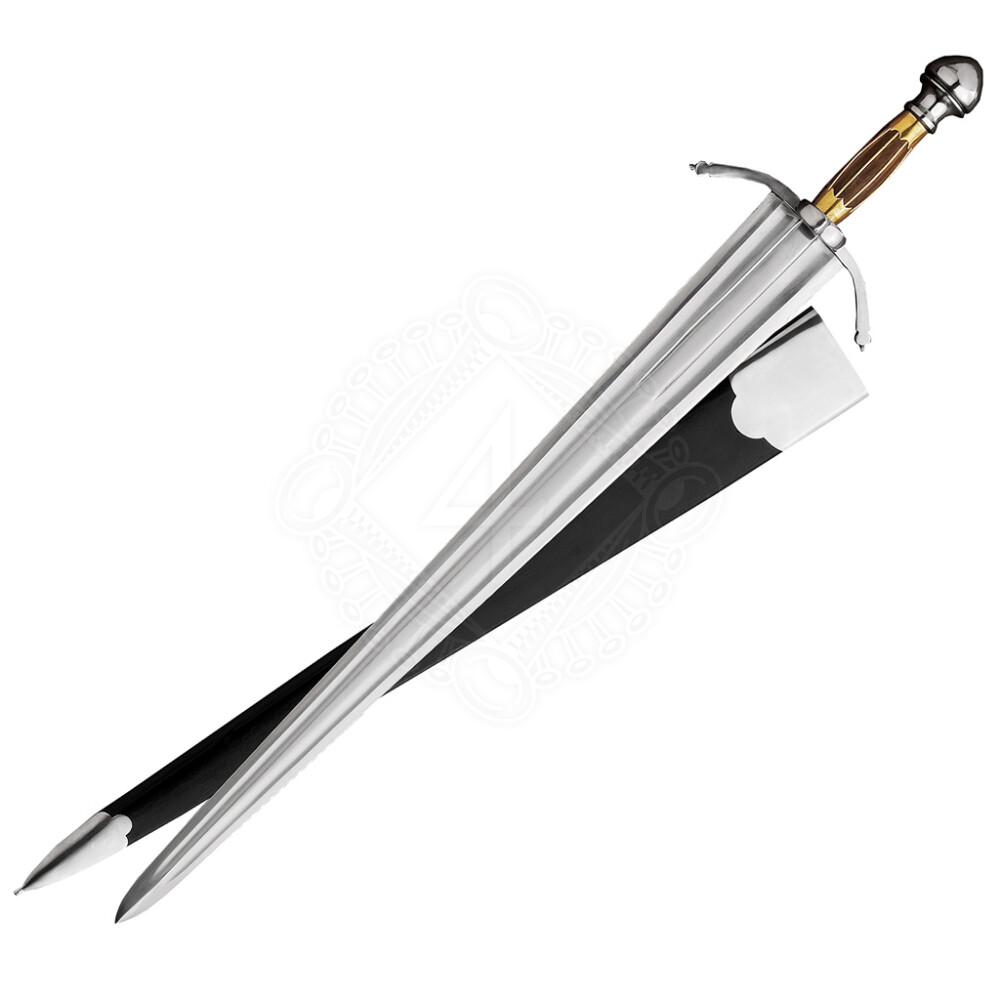 The grip is wood with brass. This sword would be used with a round shield, and no doubt favored for the pastime of sword and buckler dueling popular throughout most of Europe. Delivery including scabbard. Further product information ...