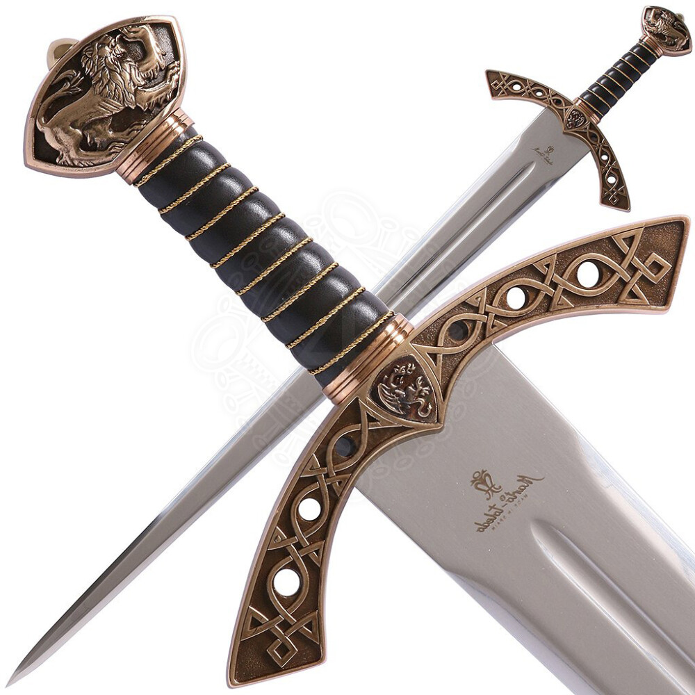 The Pommel: A massive bronze-finished pommel features a relief of a lion, symbolizing the ferocious courage Lancelot displayed in his quests.