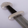 The Vikings exploded out of the north to raid and settle most of the known world. They also warred among themselves and it was not unusual for kings to lead and engage in combat themselves. This sword and its intricate scabbard are fit for one of those brave Nordic kings. Each steel part is handmade and incredibly detailed, especially on the leather embossed scabbard, then richly plated in real silver. Further product information ...
