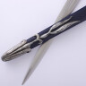 The blade is high-carbon steel, made by the master smiths of Windlass Steelcrafts. The metal fittings have an antique finish and emulate the flowers of a new spring. The two-handed grip, as well as the wooden scabbard, has been covered in rich, soft blue leather. The scabbard also is adorned with antique flower-like metal fittings.