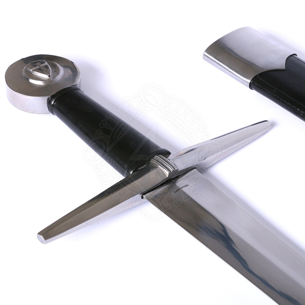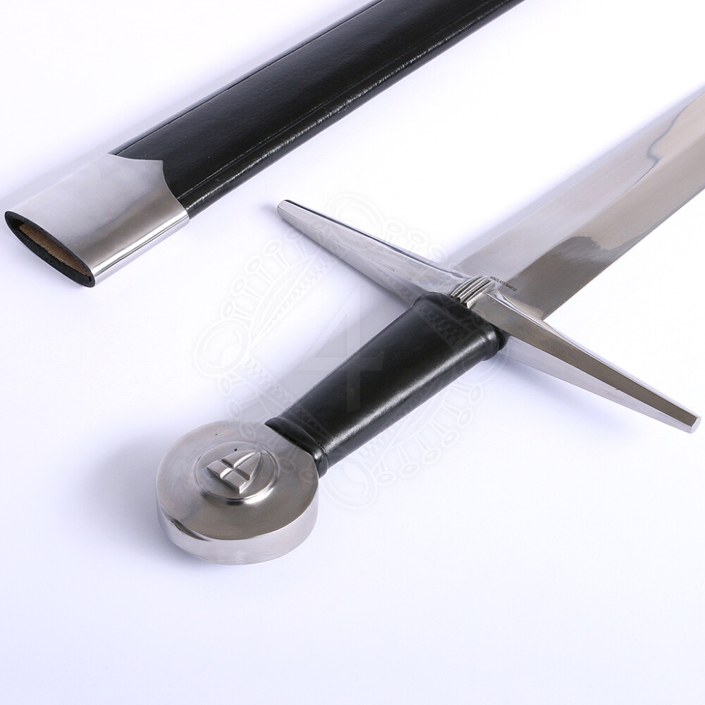 - A relief of a crusader shield is ground on both sides of the disc pommel