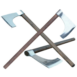 1xTo the victims of the Vikings, they were all Danes. It didn't matter whether they came from Norway, Denmark or Sweden, they called them Danes. Most everyone is familiar with the larger Danish Axe, with the monstrous blade sometimes over a foot wide. But smaller axes were quite popular for all sorts of work, hewing the limbs of trees as well as the limbs of men. They could be thrown if needed, but were quite handy in close combat with or without a shield. Not only is this a fine replica, it is a fine axe in its own right. Further product information ...