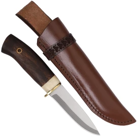 The blade is made of high-carbon steel with visible forging hammer stamps. The handle is made of stabilized hardwood and bone. Delivery with leather sheath. Further product information ...