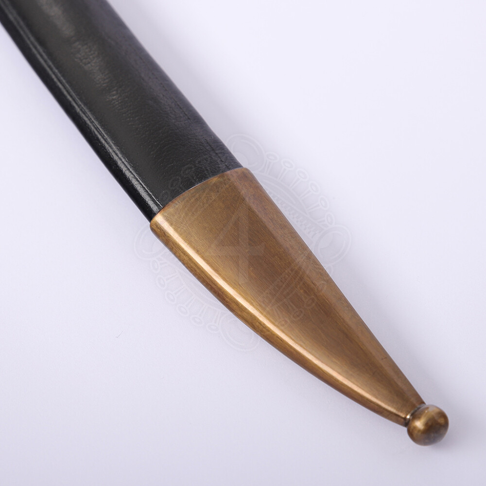 Comes complete with a black leather scabbard with belt stop and matching antique brass fittings.