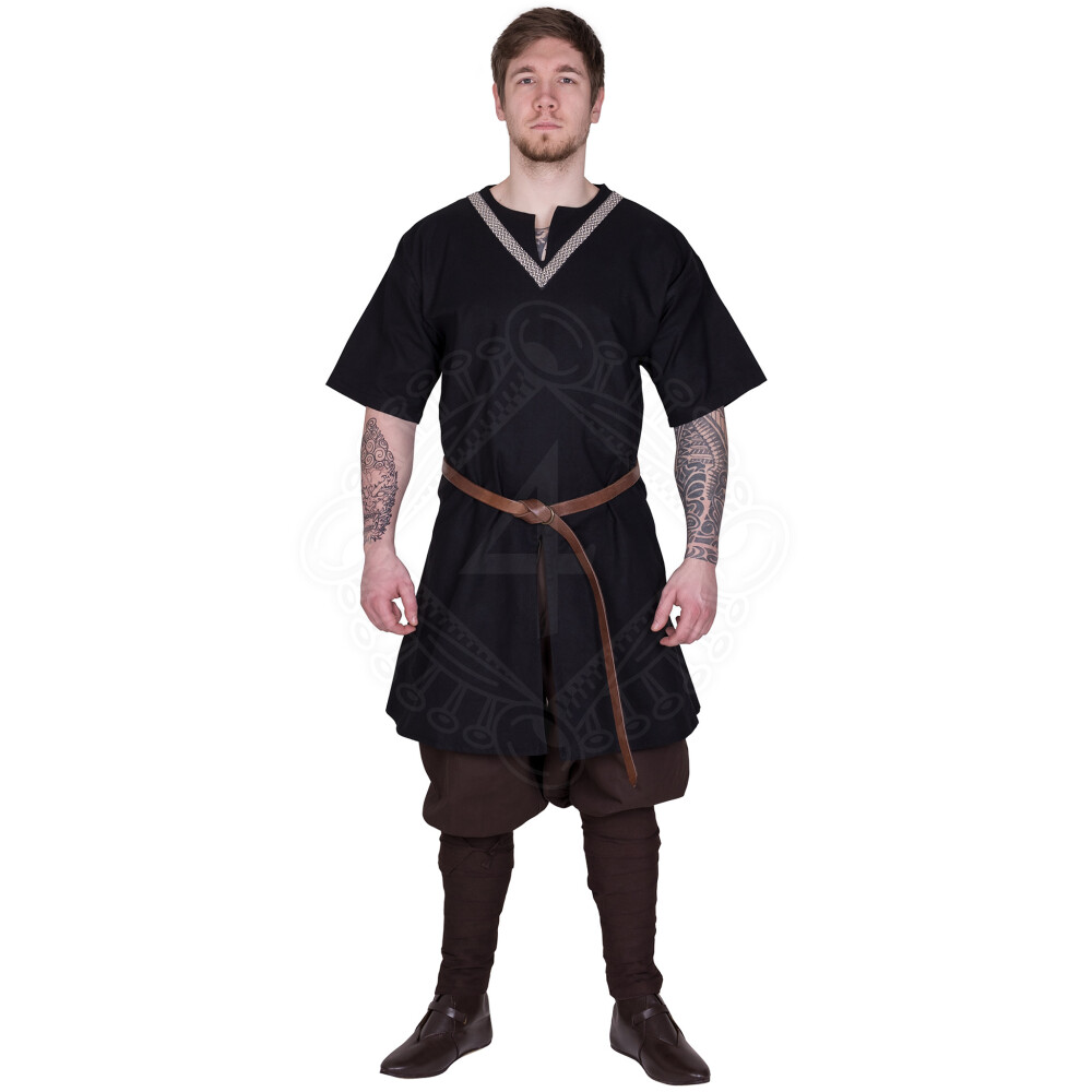 Medieval Braided Tunic Ailrik, short-sleeved, black