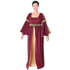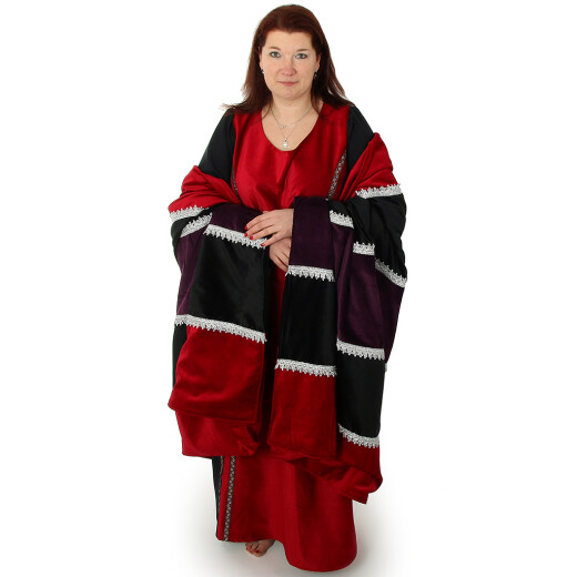 This turquoise gown is cut wide and tends to run larger, but the lacing with a sturdy cord at the back will adjust the top to fit your figure perfectly. Further product information ...