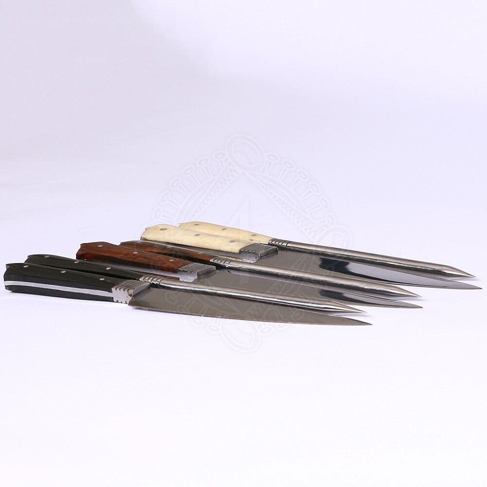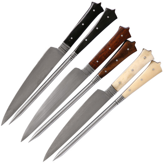 Materiál ujde, avšak daný set není plně doladěn, ostré nedobroušené hrany rohoviny, nezačištěné otřepy po vybroušení drážek v kovu, špatně dobroušené sváry. Na koženém pouzdře nezahlazené hrany. Nejde však o nic, co by člověk s jemným pilníkem, smirkem, trochou oleje a trpělivosti nevyřešil.