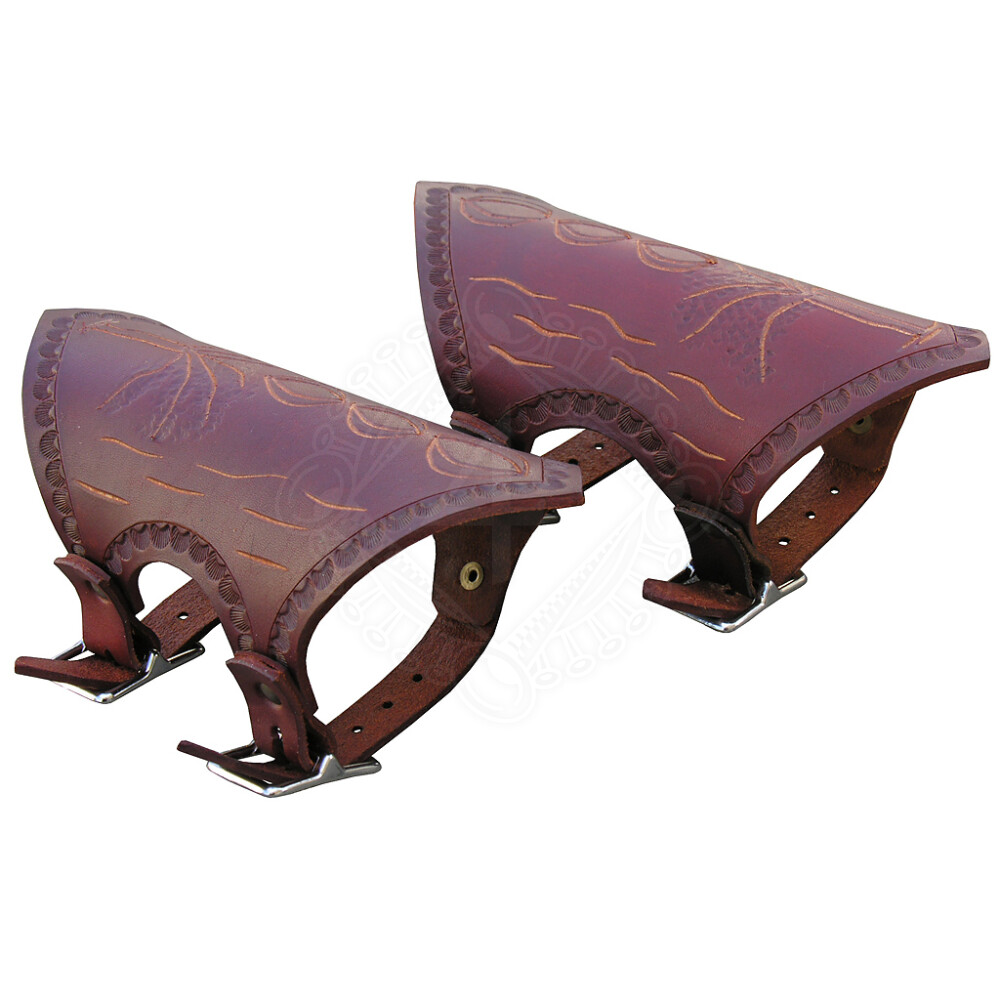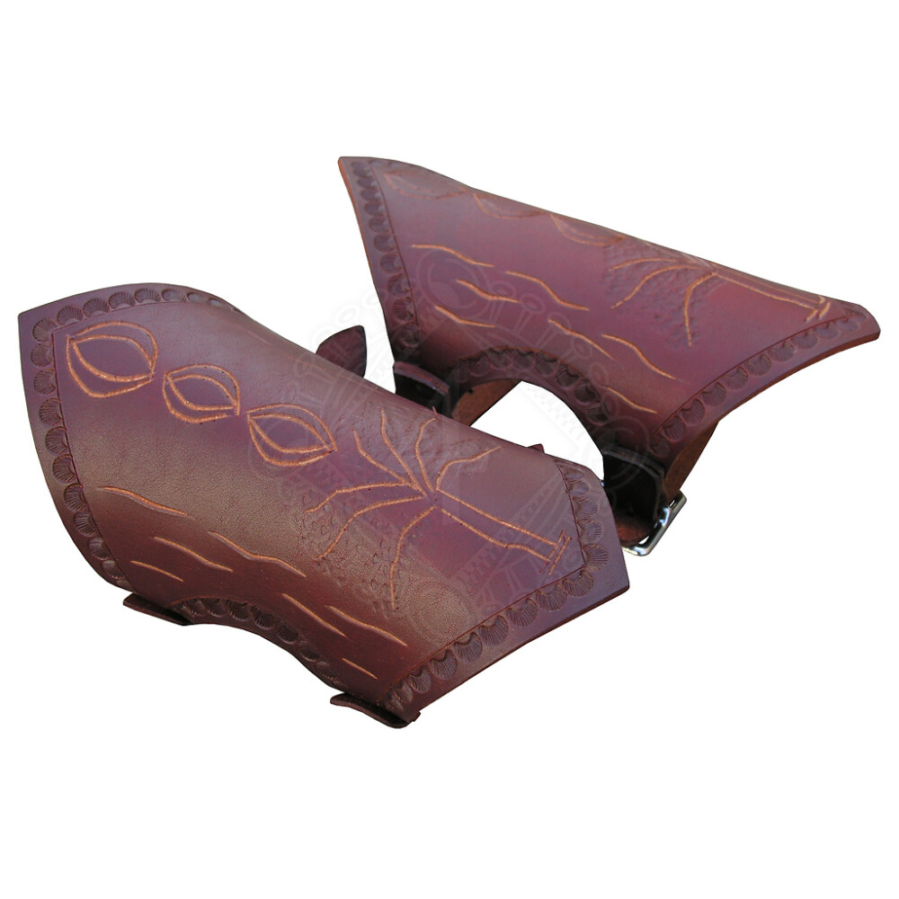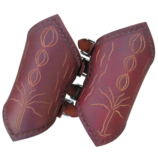 The decorated fantasy guards protecting the forearm are made of up to 3.5mm thick cowhide. The entire surface of the bracer is decorated with hand-made engraving. The bracer is closed with two buckles. Further product information ...