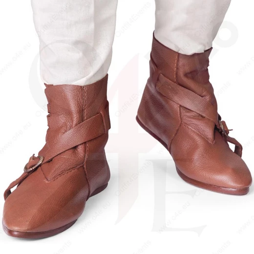 Are you looking for footwear that stands out from standard laced boots and adds a touch of originality to your costume? These low leather boots with side fastening are a replica of an archaeological find from Dordrecht, Netherlands. They are an ideal choice for 14th-century re-enactment, but their cut and "Northern" character also fit perfectly into fantasy costumes, LARP, or for characters of Northern merchants and travellers. Further product information ...
