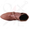 This model is based on a specific historical find (classified as Type 30, variant 1a) from excavations in Dordrecht, where over 200 types of medieval footwear were discovered. The main distinguishing feature is the split fastening with a pull-strap. A leather strip wraps around the ankle and is secured with a brass buckle on the side. This solution is not only visually attractive but above all practical – you can put the shoe on quickly, and the strap provides surprisingly good ankle support, which you will appreciate when moving in uneven terrain.