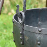 This nice camp pot is made out of several overlapping steel sheets, which are connected by authentic rivets.As riveted pots very often leak, the joints have also been welded inconspicuously from inside. The handle is hand-forged fromsolid square steel. Further product information ...