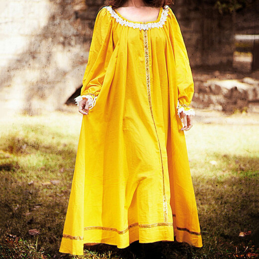 The Renaissance period is characterized by ease, artistic feeling and sense of beauty. This fresh and airy summer chemise will give you a sense of air on hot summer days. The chemise is made in a lemon yellow colour with white lace on the sleeves. Further product information ...