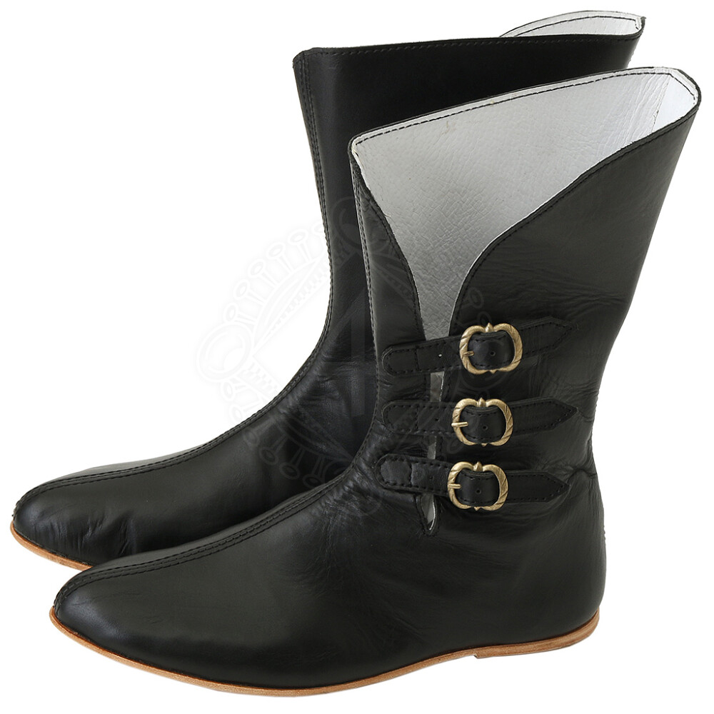 Leather boots with brass buckles