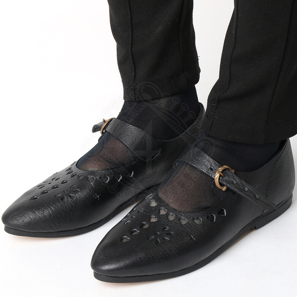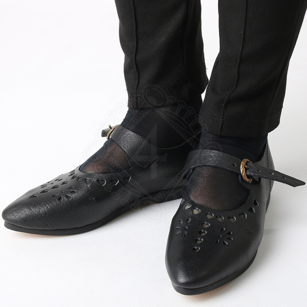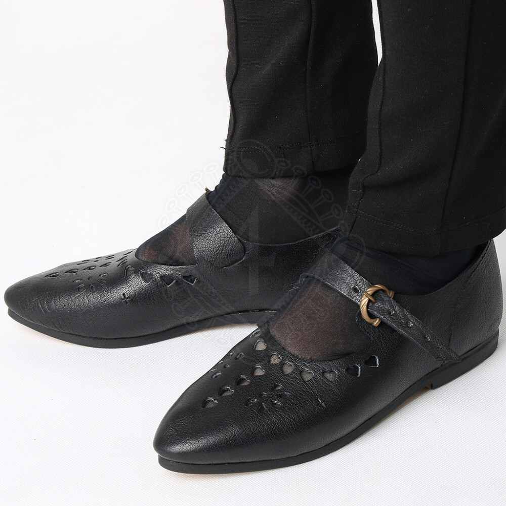 These medieval women low shoes with decorated vamp offer nice design, excelent shoe protection and wear comfort for any historical re-enactment event. Further product information ...