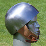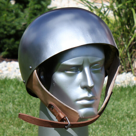 2xThe cervelliere is a round, close-fitting steel skull cap. It was worn as a helmet during the medieval period. It was first introduced during the late 12th and was the primary head protection for Crusaders at that time and was worn either alone or over chainmail. By the late 13th century a great helm would usually be worn over a cervelliere. The back of the helmet grew longer over time and evolved into the bascinet. Cerveillieres were worn throughout the medieval period and even during the Renaissance. Cheap and easy to produce, they were much used by commoners and non-professional soldiers who could not afford more advanced protection. Further product information ...