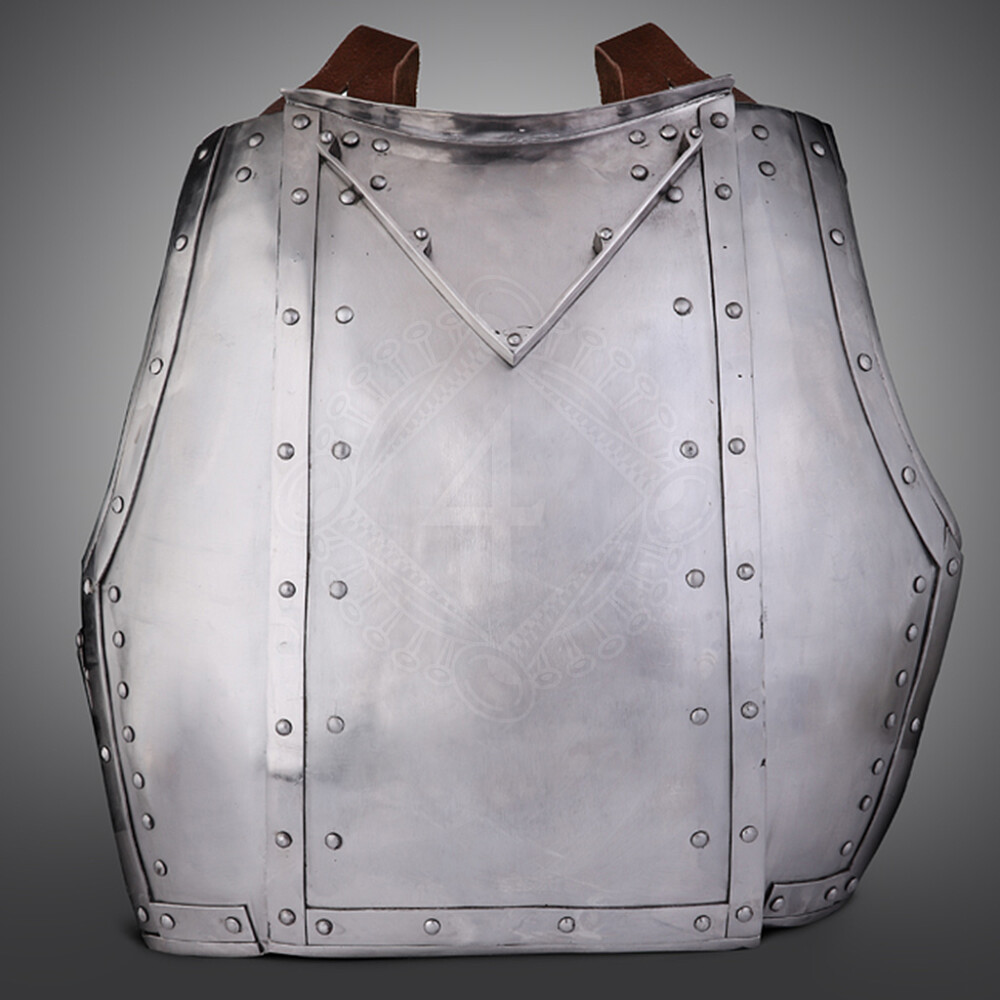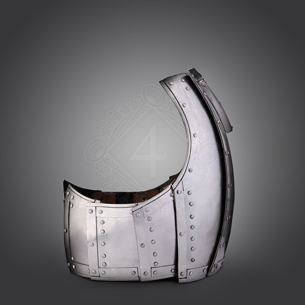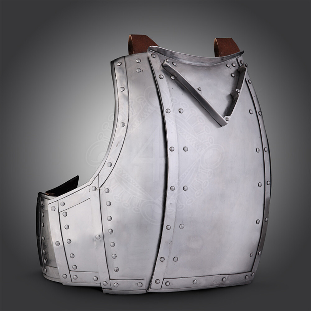 This Churburg style chest plate is made from 1.6mm (16 gauge) steel. The effective gauge of the steel plate may vary due to the handcrafted way of manufacturing. Further product information ...