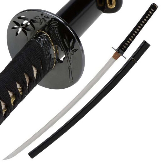 Symbolic of the straight growth of the bamboo, and the Citadel Katana Bamboo has a small blade deflection. Handle accounts (Kashira) and handle clamp (Fuchi) are from Iron, covered with a simple but elegant, high-gloss black lacquer. Iron is also the tsuba, which is not cast but is made by hand. It shows exactly how butt cap and grip clamp, finely engraved bamboo motifs. Trim rate (Menuki) of silvered bronze offer a nice contrast to the dark winding handle (Tsuka-Maki) and emphasize the graceful whole. Further product information ...