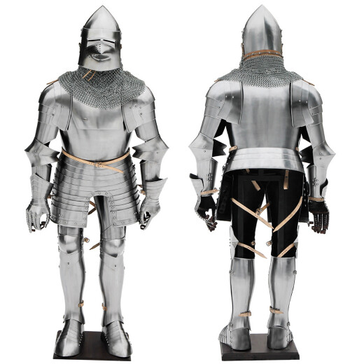 This iron protective armor represents our reconstruction after a brass relief on the tomb slab from the grave Margrave of Meissen, Landgrave of Thuringia. The tomb slab was made in the first half of the 15th century and shows a suit of armour from the second half of the 14th Century. It is slightly stylized of the engraver and does not show exactly how the armour exactly looked like. Further product information ...