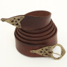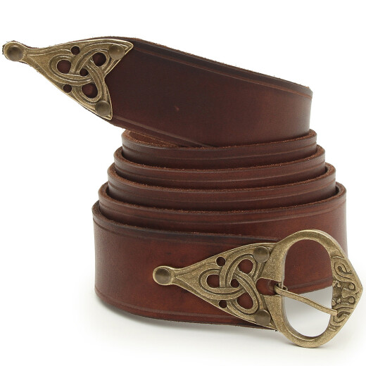 Viking Belt Digur of supreme quality is made out of genuine cow leather. It is equipped with a bronze buckle and a strap end in Viking style, which was made in traditional way (Lost-wax casting). The buckle is hand-sewn with linen thread. The leather is deep-dyed. The edge is decorated with carved line. Further product information ...