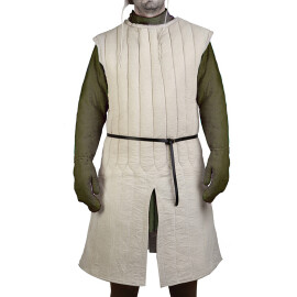 Are you looking for the ideal solution for hot summer battles, or do you need to lighten your current armour loadout? This light sleeveless gambeson in natural linen color is designed just for you. It corresponds to the fashion and armour trends of the years 1200 to 1350. Being sleeveless, it provides maximum freedom of movement and better ventilation, which you will appreciate when the sun is blazing and the fight drags on. It is the perfect choice for archers, light infantry, or as a supplementary layer under chainmail. Further product information ...