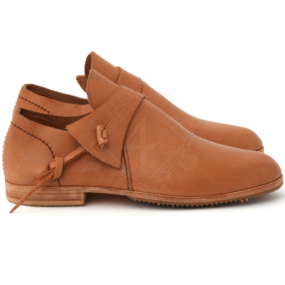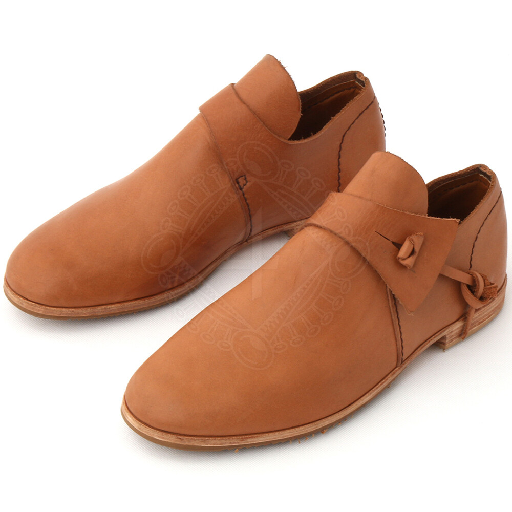 These shoes were common among people of lower classes like merchants, artisans, peasants, clerks, etc. The shoes are machine-sewn and pegged. They have leather soles with heels that are covered with a thin non-slip rubber. They close with leather straps on leather knot across the vamp. These shoes are quite comfortable also with regard to the contemporary demands. Further product information ...