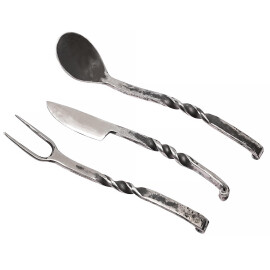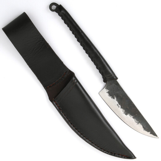 Completely made of carbon steel with forge finish. The handle is wrapped in leather. The simple medieval knife comes with a leather sheath. Further product information ...