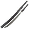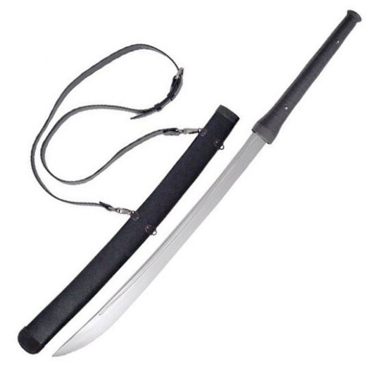 1xBred in the jungles of Asia, our Banshee sword has its origins in the Thai Krabi and its close cousin, the Burmese Dah. Extremely strong and very quick, the Banshee is a cutting sword first and last, with a slightly weight-forward balance for slashing through jungle growth with ease. The high-carbon blade is heat treated for optimum shock absorption and edge retention, and the spiral-wrapped black leather grip provides excellent handling qualities. The sword comes equipped with a high-retention locking mechanism for safety. The wooden scabbard is finished in matte black, with side rings designed to allow a number of carrying options. Further product information ...