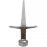 - Blunt Variant (Class B): With an edge thickness of 2-3 mm and a rounded tip, this version is intended for contact historical fencing (HEMA) focused on power techniques with a longsword, for demanding re-enactment battles, and stage combat where a mighty weapon of a heavily armoured combatant needs to be depicted. With a weight of 2180 g (approx. 4.81 lbs) and a point of balance at 6.5 cm (approx. 2.6 in) from the guard, handling this sword requires considerable strength, experience, and mastered technique.